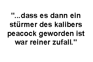 Aber Peacock hat trotz seiner Qualitäten erst 1 x ins schwarze getroffen. Zu wenig, für einen Mann seiner Klasse?